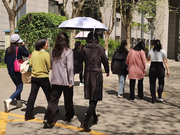 活动伊始,全体参加活动的教职工在主C楼下集合并合影留念,随后迎着午间温暖的阳光出发。春日华电,花香四溢,精气灼灼,能量满满。老师们从主C楼下出发,途经主楼广场、红梅园、月季苑、主楼礼堂广场,绕主楼一圈至主礼广场返回。大家结伴而行,呼吸着新鲜的空气,欣赏着校园的美景,进行着生活和工作的交流,在轻松、愉悦、团结、奋进的氛围中,走进校园,走出健康,走进生活,走出和谐。