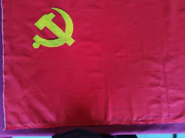 5月15日至16日,分工会利用双休日加班加点花费数十个小时完成大号红旗的绣制工作。