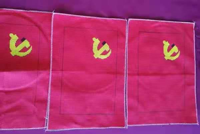 从4月27日至5月14日,分工会选派张颖敏、李占芳、王棣三位党员完成了三面小号红旗的绣制工作。