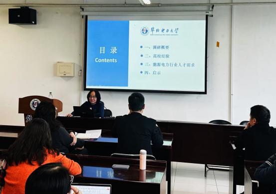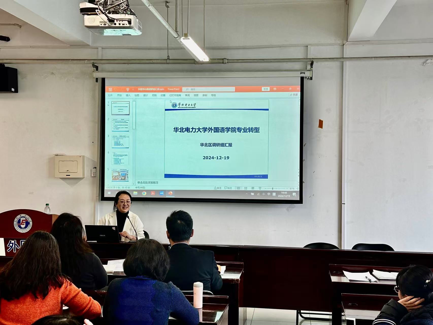 华北调研组孙利老师汇报了以用人单位为主的调研结果,提出外语专业需要结合能源电力行业进行专业转型,建议培养学生具备跨文化交流、工程项目管理、法律知识等多方面的能力,并探索与企业的深度合作,推动校企联合培养。