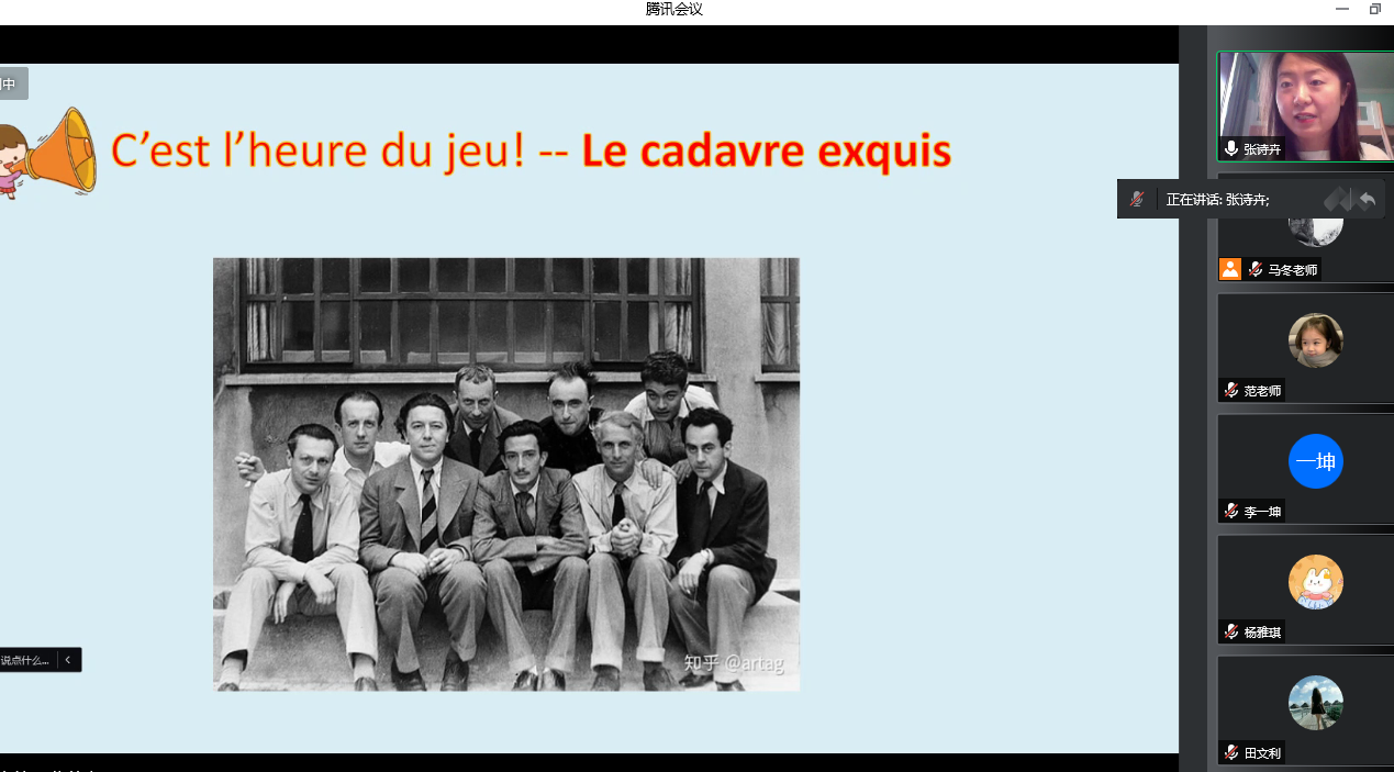 杨桐老师主要讲述法语中以être作助动词的复合过去时的动词,以及过去分词与主语的配合,具体包括未完成过去时的构成、未完成过去时的用法、未完成过去时与复合过去时比较。吴嘉平老师给予了教学点评。