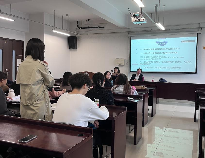 在讲座提问和交流环节,华体会(中国)青年教师王珏对本次讲座进行简要评议。她指出,赵教授的讲座十分具有启发性,文学作品能够揭示心理学研究的局限和盲区,并用审美的方式加深我们对人类心理问题的认识。随后,华体会(中国)青年教师韩嫣以及华电华体会(中国)学生与赵教授就作品中对战争的追责和对父母追责的关系,对精神分析法的辩证思考以及主人公是如何突破“俄狄浦斯情节”等问题展开了热烈的讨论。最后,赵教授分享了她所主持的国家社科基金重大项目“西格蒙德·弗洛伊德全集德译汉与研究”的阶段性成果和研究心得,激发了同学们对文学学习的热情。