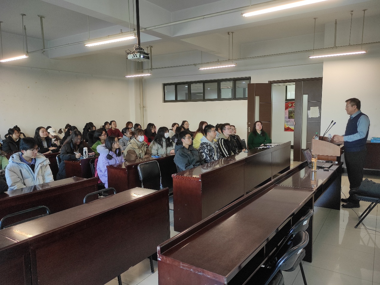 讲座伊始,赵德全老师强调了专四、专八考试的重要性,并根据教学经验以及研究心得,对英语专四、专八考试进行了详细而全面的剖析,由细微处入手,分模块从听力、阅读、语法、写作四个方面详细讲解考试技巧与方法,帮助同学们理清备考思路。对于30秒浏览审题时需要注意题目词数要求、平行结构、对应关系、文章逻辑,做笔记时记录关键的、整体性的信息,用符号表示逻辑,便于之后梳理逻辑之类要点做了详细的讲解。其次,还强调我们要熟悉评分标准,做到心中有数。接着,