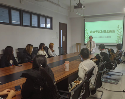 各班班会中班主任倡议同学们认真复习,诚信应考,提醒同学们应在考前学会疏导学习压力,合理安排作息时间,班级内形成良好的学习氛围、互相帮助的向上之风。严肃考风考纪至关重要,翻译2101班同学们纷纷表示要遵守考试纪律,按时参加考试、不带违禁物品进入考场;诚信考试,不作弊、不抄袭、不通过不正当手段获取成绩。翻译2001班班主任刘斌老师重申校规校纪,强调了良好的考风考纪对于学生的学业发展和成长的重要性,明确诚信应考是一个合格的学生必备的基本素质,同学们要树立正确的价值观和行为准则。