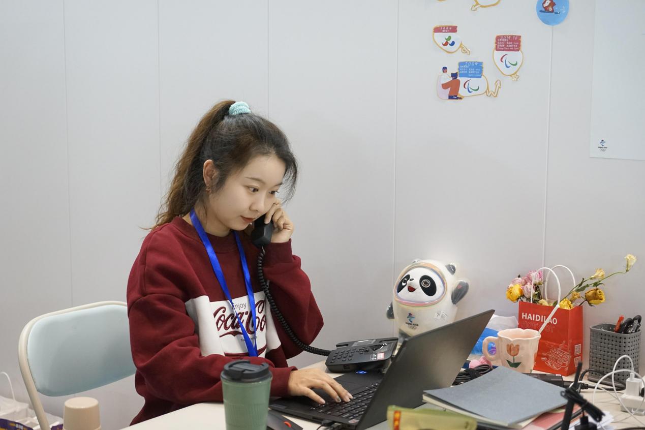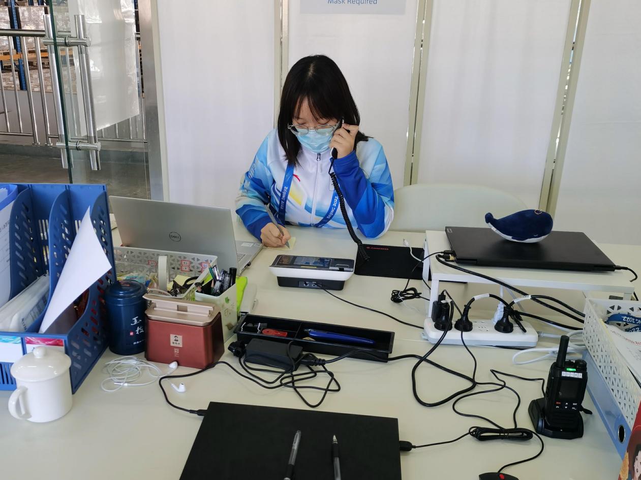 担任延庆制服和注册分中心技术领域现场技术支持助理。主要工作有协助技术经理和技术工作人员完成好场馆技术设备的登记和发放;接听技术支持热线,联系工程师以维持场馆正常运行。在工作的每一天,她都在不断学习调整自己,争取以最高的水平服务好技术团队,服务好延庆制服和注册分中心,迎接北京2022冬奥会和冬残奥会,一起向未来!