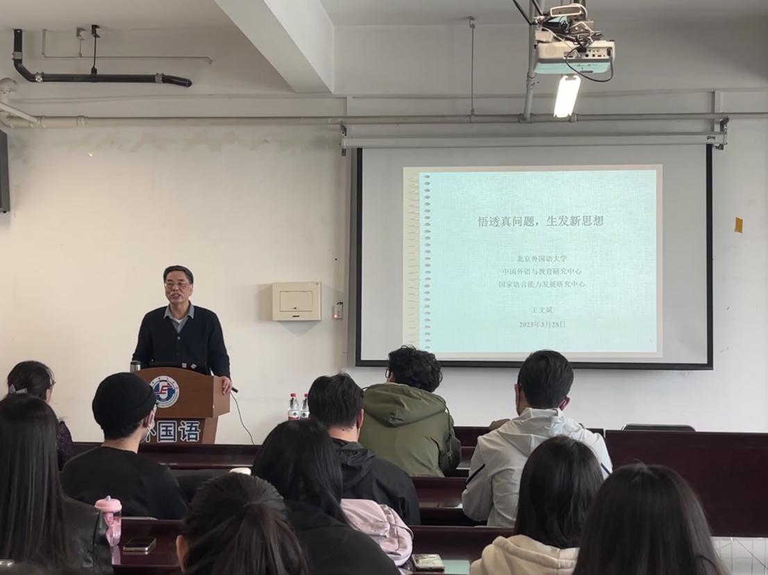 王教授细致的讲授加深了老师和同学们对英汉两种语言的理解,激发了大家悟透真问题、生发新思想的热情,最后讲座在热烈的掌声中圆满落幕。