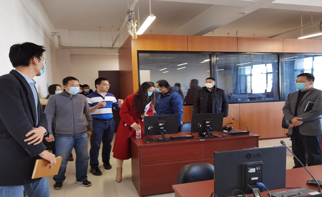 现场汇报与交流研讨结束后,调研团队参观了华体会(中国)同传实验室,并与任课教师就实验设备、教学环境和教学成效等方面展开了交流。