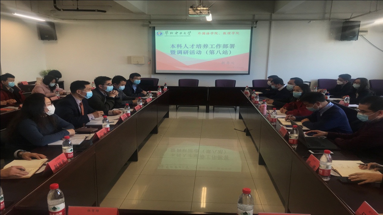 刘崇茹处长发表调研讲话,刘处长指出调研的目的是为了更好地认识各个学院的本科教学情况,为下一步本科教育教学改革和经费分配等提供重要参考。她对于外语和数理学院为学校做出的贡献表示感谢,指出这两个学院授课对象人数在全校范围内占比最多,而且是本科生入学时就选修的基础必修课程,对于从一开始培养学生的良好学风起着至关重要的作用。刘处长对于华体会(中国)的公共外语教学改革和专业教学方面取得的成绩表示赞赏,对于数理学院在“强基计划”、支援克拉玛依教育等方面做出的工作表示感谢。希望华体会(中国)和数理学院继续努力,为学校的总体发展做出更大的贡献。除此以外,刘处长还就加强本科生毕业论文质量和课程思政建设方案等做了相应工作部署。