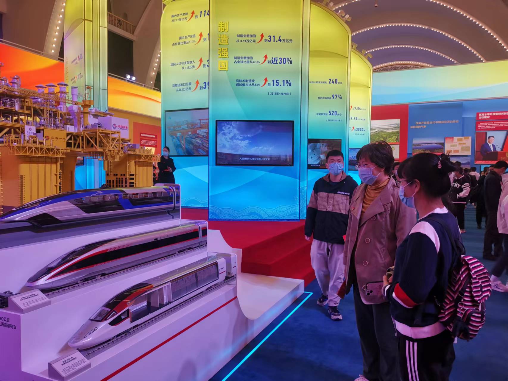 “奋进新时代”主题成就展聚焦新时代10年党和国家事业的伟大成就,分为室外展区、中央综合展区、地方战区等6个展区。党员们边走边看,认真听取讲解,积极参与互动,全面深入地了解党的十八大以来祖国的伟大变革及各领域取得的历史性成就。