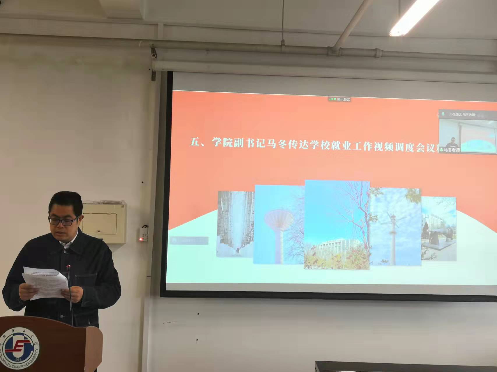 学院党委副书记马冬传达了学校就业工作视频调度会议精神,肯定了学院最近就业工作取得的成绩,更指出要清醒认识到2022年就业工作面临的巨大挑战,必须要紧紧抓住3月至5月这一重要的就业求职窗口期,紧密围绕学院本硕学生就业需求和就业心理,借鉴本科生的“就业坊”+深度辅导谈话,围绕“一个中心、两个辩证、三个准备、四个开源、五个细节”,开展“精准化”就业教育,下更大的决心和用更多的努力来扎实推进就业工作。