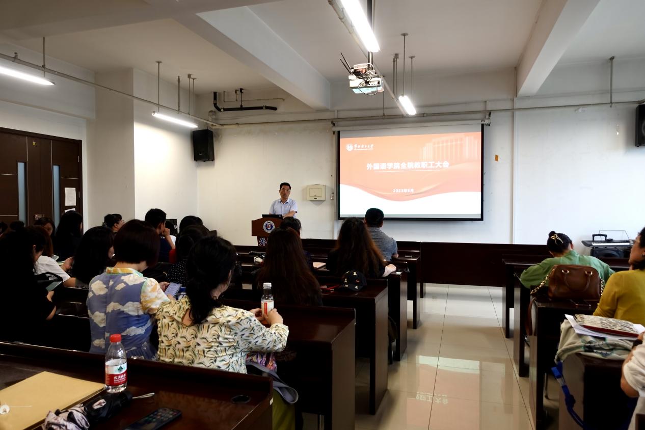 首先,他宣布了副院长张倩任职情况,并对副院长的分工职责进行了说明,希望学院全体教师在工作中做到互相理解、互相包容,求同存异,取长补短,有序完成好各项工作任务。