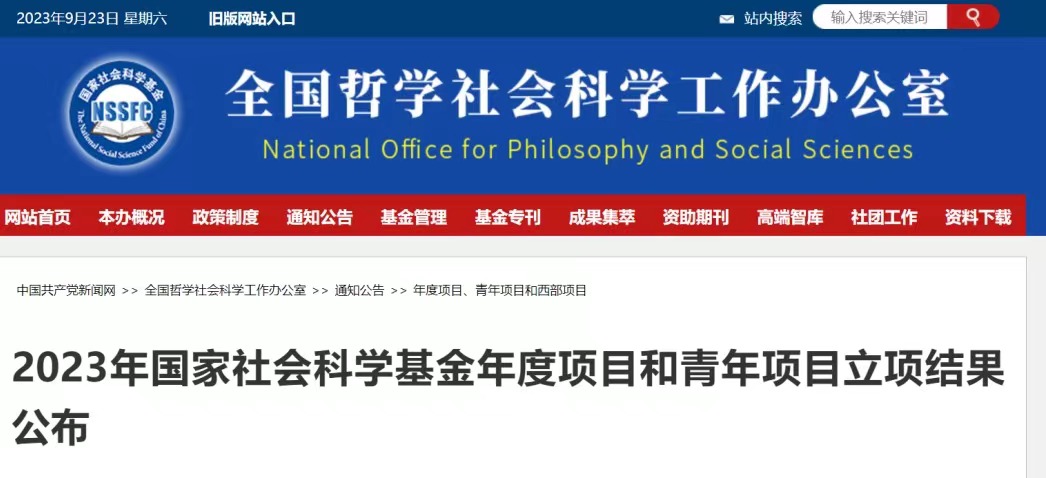 近日,全国哲学社会科学工作办公室正式公布2023年国家社会科学基金年度项目、青年项目和后期资助项目立项结果。经公示,我院获得2个立项,取得立项新突破。