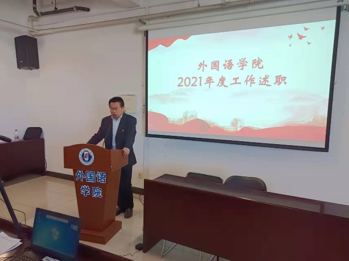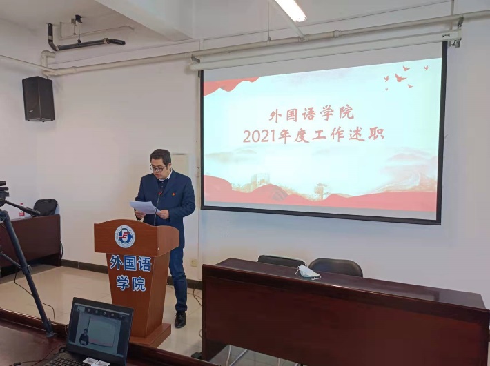 大会第二项,学院党委书记于喜海、院长康建刚、副院长刘辉、党委副书记马冬,依次围绕分管工作及个人履职情况进行述职,总结2021年度取得的成绩,存在的问题和今后的工作方向。