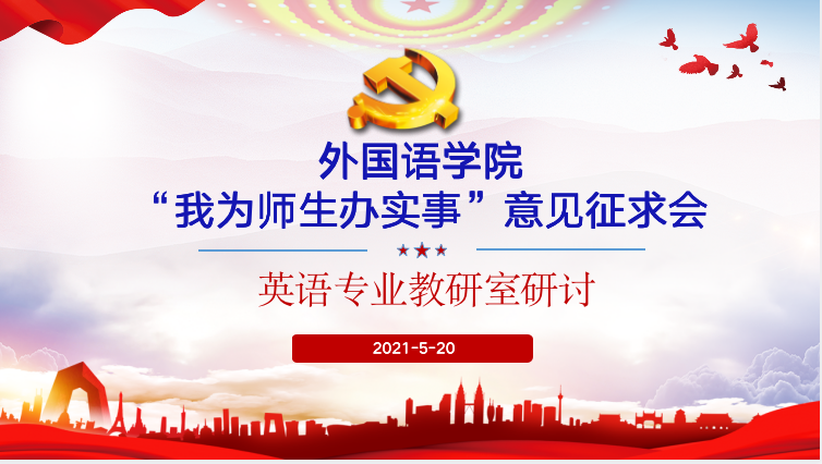 为进一步落实学校“我为师生办实事”实践活动的通知精神要求,华体会(中国)党政领导班子成员党委书记于喜海、院长康建刚、副院长刘辉,副书记马冬于5月20日下午深入基层教研室----英语专业教研室,了解教师们的所急所想,将“我为师生办实事”落到实处。