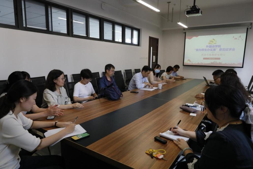在座谈中,老师们积极地提出了阻碍学院发展的一些问题,例如:师资队伍建设方面,急需引进高质量人才应对目前高强度的授课工作,也需要为学科发展进一步培养和发展新的硕士生导师;硬件设施建设方面,急需改进维护语音室的设备、优化办公环境;人才培养方面,进一步优化研究生培养过程,以客观规律为准绳,重视文科培养与理科培养的不同,改进研究生培养中的挚肘因素,为培养高质量人才提供良好的制度基础;教研科研方面,在加强与其他教研室教师的合作方面,希望院方出台给予相应的工作量认定的相关规定,保证老师们在完成本职工作的同时,还能保有积极的态度进行跨教研室间的教学和科研活动。