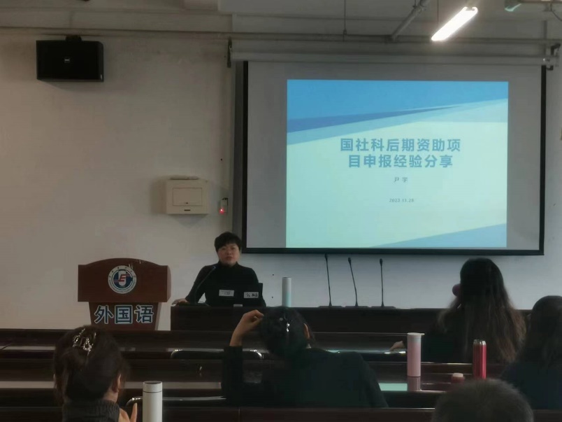 为贯彻党中央关于深入推进世界一流大学和一流学科建设的指导意见,提高学院外语学科科研水平,我院高度重视教师的国社科基金项目申报工作。11月28日,我院召开科研推进会暨国社科申报经验交流会,邀请尹宇、王珏两位荣获2023年国家社科基金立项的老师进行经验交流分享。