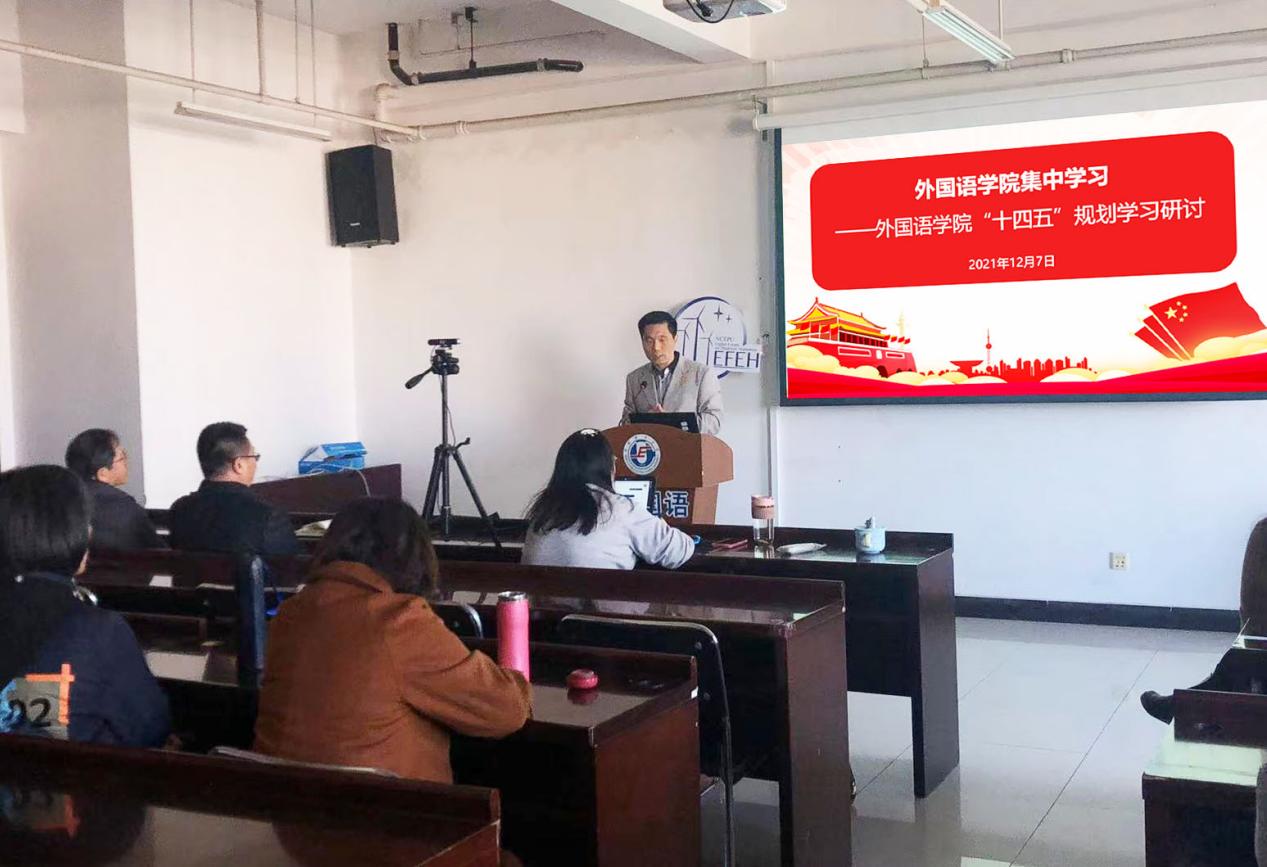 全体教职工认真聆听了“十四五”发展规划解读,并围绕“十四五”发展规划内容各抒己见,发表看法。学院副院长刘辉从学院专业建设、课程建设、科学研究、“十四五”发展规划目标等方面,鼓励全体教职工把握机遇,积极投身学院建设,争取在“十四五”期间实现突破。学院党委纪检委员、大英一教研室主任张倩表示,“十四五”发展规划既为学院未来发展绘制了宏伟蓝图,也为教师布置了下一阶段的工作任务。作为学院一份子,自当肩负责任使命,将继续担当实干,开拓创新,为推动学院发展贡献力量。大英二教研室主任王群表示,从教研室和学院层面出发,将继续为教师开展工作创造机会、提供帮助,助力教师科研、教学成果产出,为学院建设添砖加瓦。吕亮球教授表示,2021年是“十四五”规划的开局之年,学院不仅要开好头,也要始终坚持、贯彻落实规划内容,争取到2025年结出丰硕的果实。其他教师也纷纷发言,表达了结合自身优势,投身学院建设的意愿。