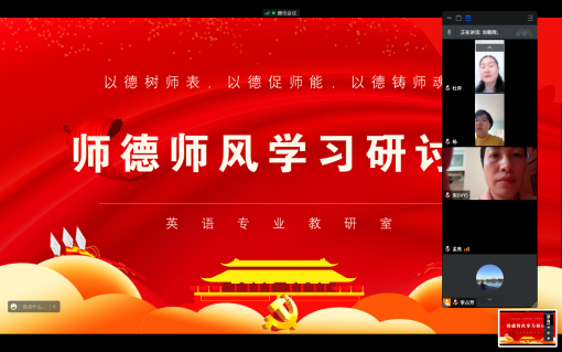 2022年10月27日,英语专业教研室召开师德师风专项排查工作征求意见会,会议由英语专业党支部书记、英语专业教研室主任郑蓉颖主持,学院领导班子成员,党委委员张倩老师出席了会议。