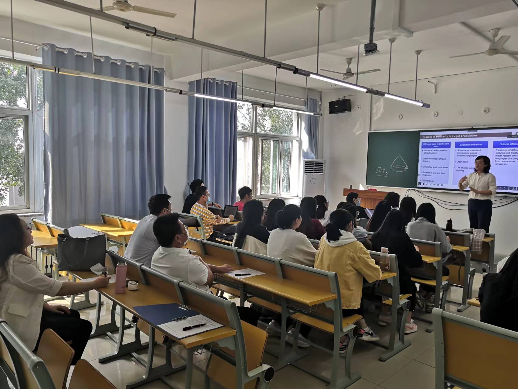 学院各位领导、老师首先到沙河院区励精楼405旁听了孙利老师的《能源电力法律翻译》课程。孙老师深入浅出、中西对比的授课,为学生理解中欧法律体系的不同,以及能源电力法律的特点,搭建了一个扎实的平台,也进一步提升了学生对于课程的兴趣。