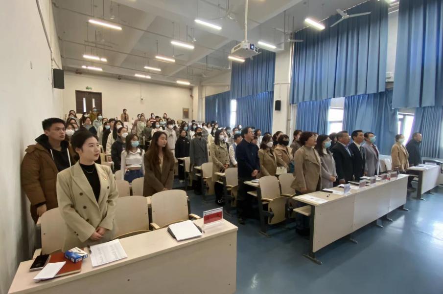 大会伊始,全体党员起立,齐唱国歌。