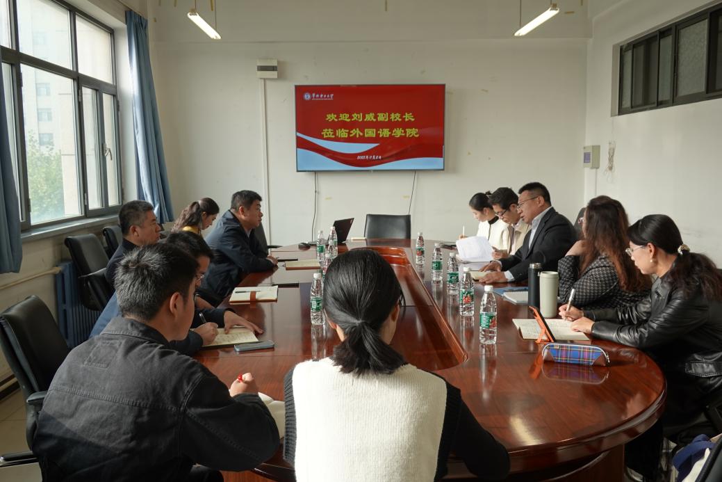 刘威听取了学院工作和学生工作汇报。于喜海强调,学院党委高度重视学生工作,并表示将按照学校党委部署,紧密围绕学生成长成才需求,从学科建设、教学培养、心理帮扶、就业指导、能力提升等多方面为学生全面发展提供平台和支持。马冬针对学院学生工作特色和方向,从“紧贴学生心理抓学风、多方齐抓共管促就业、弘扬一专多能强队伍、彰显立德树人创品牌、高悬长鸣警钟保安全”等五个方面详细介绍了学院在学风建设、就业创业、学工队伍、特色品牌以及安全稳定方面的工作。对下一步的工作计划,马冬提出“突出特色”、“聚焦发展”和“与时俱进”三个方向。与会老师结合工作经历与自身经验,分别谈了感受和体会。