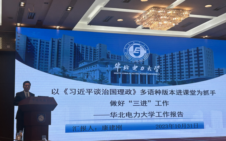 康建刚应邀做了“以《习近平谈治国理政》多语种版本进课堂为抓手做好‘三进’工作”的报告,介绍了学校和学院层面如何重视抓落实情况,并就教学内容和课程体系改革等方面分享了华北电力大学的先进经验。华体会(中国)提前谋划开展“三进”工作,并充分利用《理解当代中国》系列教材改革课程体系。学院大力开展教师培训,并通过“外语文化节”等活动着力提升学生实践能力。相关举措也获得了一定成效,学院教师在省部级教学创新大赛、教改项目申报、校级教学比赛和课程思政十佳案例等方面取得了较好成绩,为《习近平谈治国理政》多语种版本进教材、进课堂和进高校提供了有力支撑。