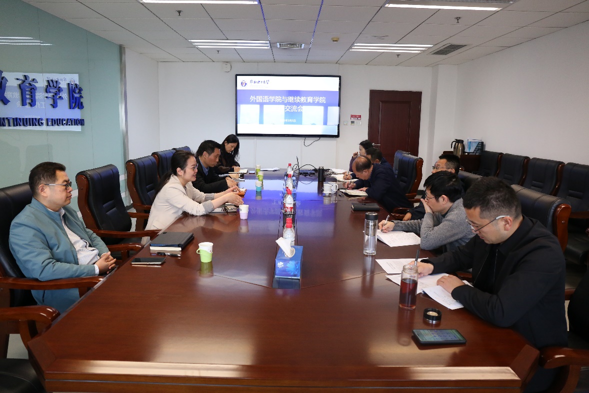 于喜海对华体会(中国)一行到来表示热烈欢迎。他表示,两学院合作基础深厚、前景广阔,下一步要加强党组织间的互联互动、合作共建,联合开展党建“1+1+1”,助力党建和业务高质量发展,并在学历学位教育、联合打造课程品牌、助推教师“工程化、国际化”等方面拓展合作深度和广度。王子杰介绍了学院开展继续教育的基本情况。王子杰表示,两学院应紧密贴合学校特色和市场需求,着眼培养既精通语言又掌握技术的复合型人才,提出两学院可在学历学位教育、国际化人才培养、跨文化交流、语言服务等多方面共商合作。