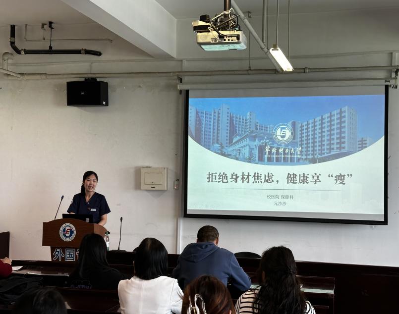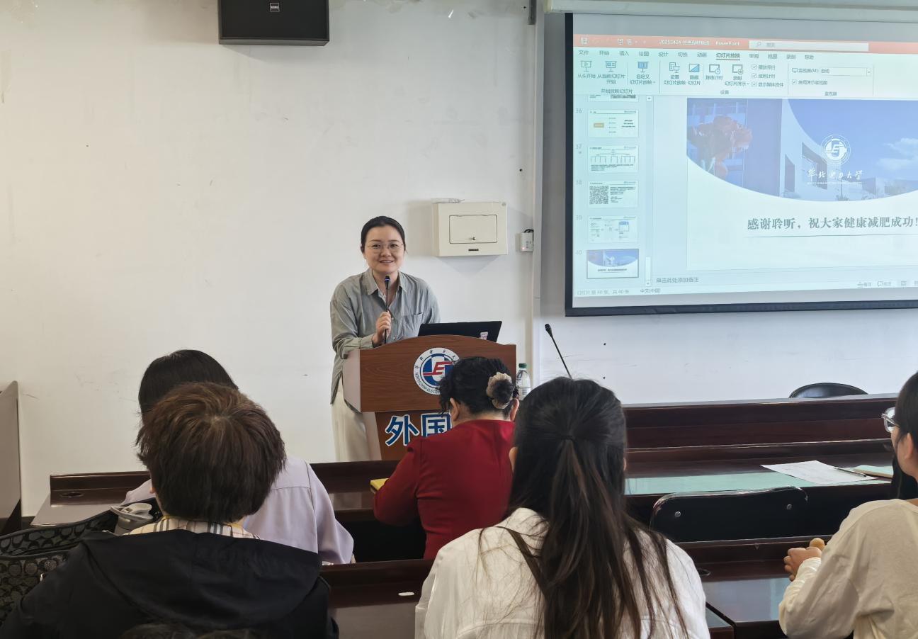 针对现代人普遍关注的体重管理问题,元莎莎以《拒绝身材焦虑,健康享“瘦”》为题,结合国家卫生健康委员会《国家健康减肥指南》,围绕健康膳食结构、运动习惯、慢性病防控等内容,对科学减重进行了详细讲解,并以生动幽默的方式为现场的师生提供了实用、易行的减重建议。